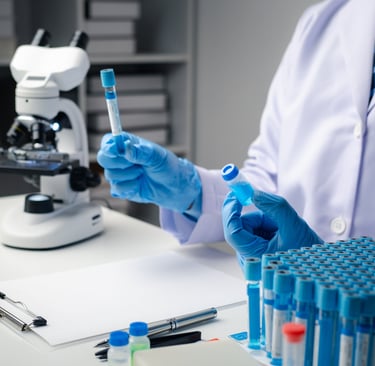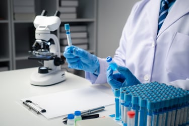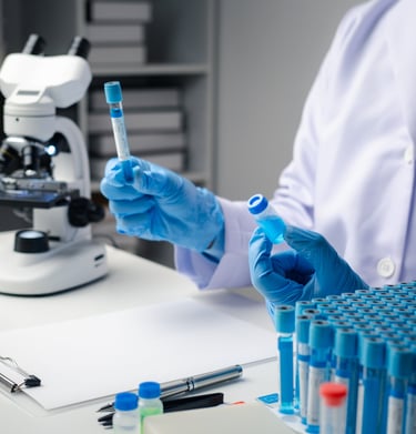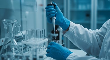 Close-up of a scientist carefully preparing peptide samples in a modern lab environment.